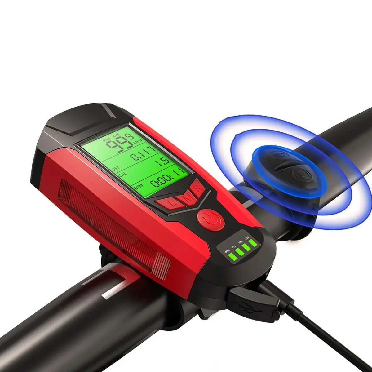 Luz con velocímetro y bocina, recargable con alarma antirrobo