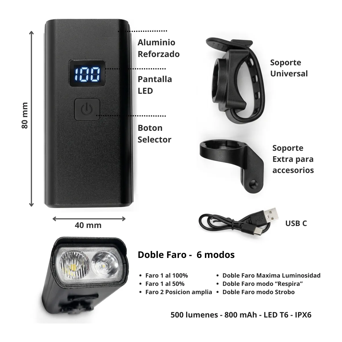 Luz Delantera aluminio