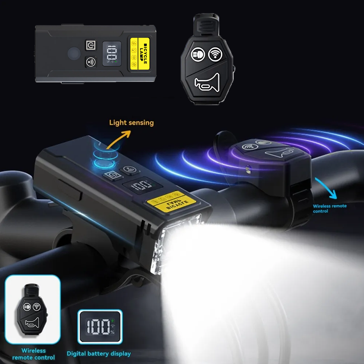 Luz delantera con mando, sensor y bocina