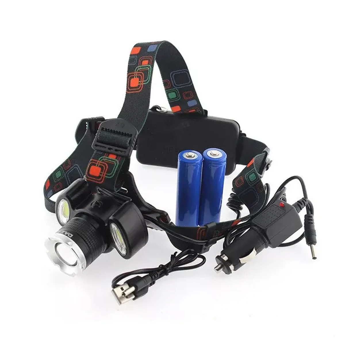 Luz multiuso enfocable con vincha, recargable con USB y aros de goma 1500mA